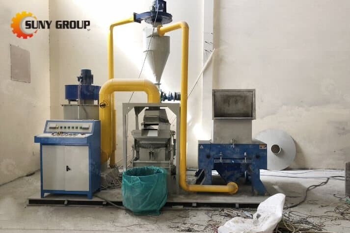 The copper wire granulation (recycling) system can process various waste cables with a diameter of 5-20mm, such as wires, miscellaneous wires, communication wires, data cables, headphone wires, etc. After crushing and separation, the plastic skin and copper particles can be completely separated. The crushed cables are further sorted after crushing and grinding, and then the plastic skin and copper particles are separated by an air separator or electrostatic separator. The recycling rate is as high as 99.8%. The peeled PVC and PE plastic wire sheaths can also be used to lay plastic runways, etc.